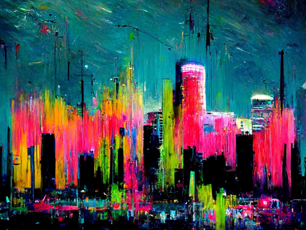 The image at the top of the post was done by Midjourney (if you’re wondering the prompt was ‘Neon soaked cyberpunk skyline, oil on canvas, by Jackson Pollock’… I think it looks great).